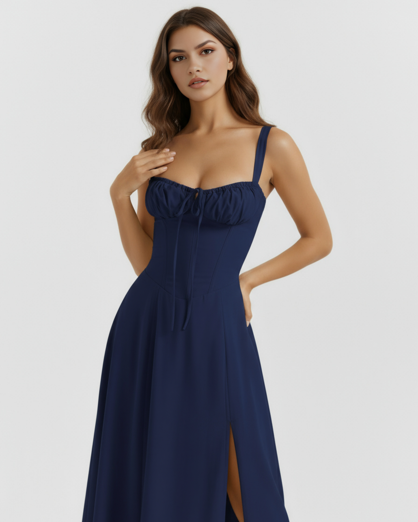 You'll feel ultra feminine in our 'Aurora' dress that's the perfect match for spring and summer garden parties. It's cut from stretch cotton in a gorgeous buttercup and has a corseted bodice to cinch the fit with a beautiful lace up back. The gathered bust has a drawstring tie and the side split adds a little sexiness to reveal a flash of leg.